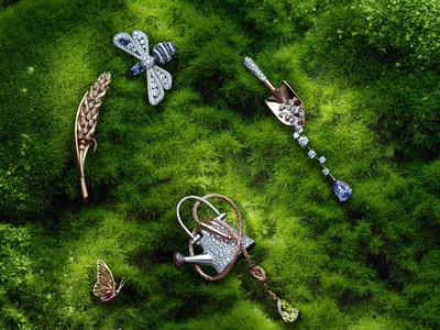 珠寶常見的花園主題,在Chaumet的巧思之下,更有趣了!除了時尚迷熟悉的花朵、蜜蜂,首度將園藝世界的日常物件轉化成浪漫珠寶,推出澆花器..
