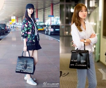2017春夏時裝周開跑,「華妃娘娘」蔣欣日前受邀飛往紐約看秀,機場時尚中,她穿上Tadashi Shoji的花朵棒球外套,手拎Delva..