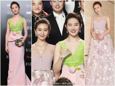Angelababy、范冰冰昨現身同場活動,身為當紅女明星兩人,現身記者會裝扮大不相同,Baby穿上深V大禮服,范冰冰則穿上粉色短版洋裝..