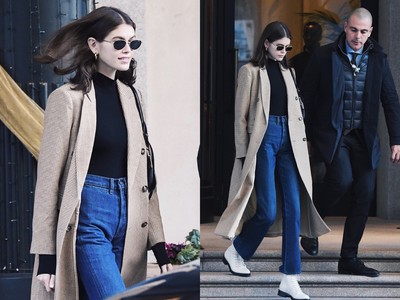 米蘭男裝周期間不少超模都聚集於此,凱亞葛柏(Kaia Gerber)就是其中之一,先前她外出時,戴上黑色墨鏡,穿著簡單大衣與牛仔褲出街,..