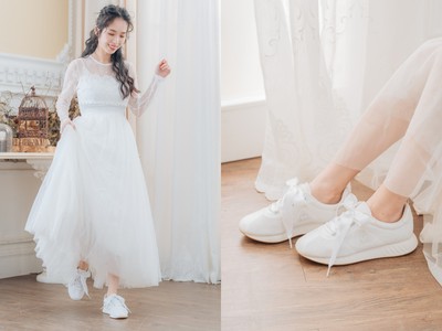 輕婚紗當道,目前婚禮不再侷限於澎湃的禮服才是王道,就連婚紗照也追求小清新的自然派風格,因此近年來許多運動品牌也都推出「婚紗鞋」,全白的配..