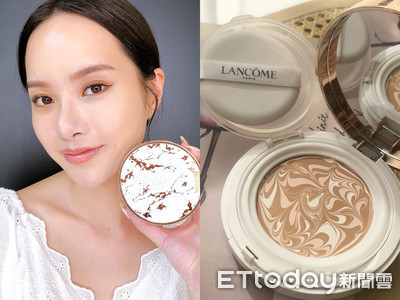 蘭蔻延續極光水的高人氣,推出被譽為「人間最美大理石拉花氣墊」之稱的全新《超極光精華水粉霜》,絕美玫瑰金大理石紋外殼,同時擁有68%極光水..