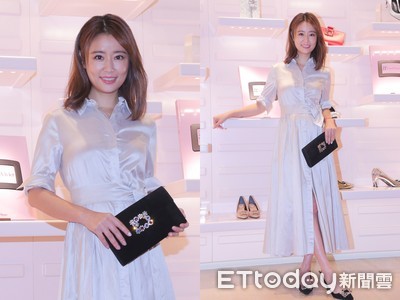 林心如今(8/9)為愛牌Roger Vivier(RV)站台,出席《#LoveVivier》時尚書籍上市酒會,她穿襯衫式洋裝配花鑽釦飾系..