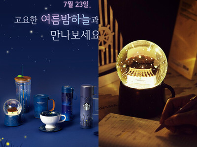南韓星巴克又推出夏季新品,此次特別設計仲夏夜星空以及螢火蟲為主題的特色商品,除了各類保溫杯、手拿杯之外,更推出夢幻水晶球,打開燈就好像悠..