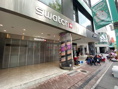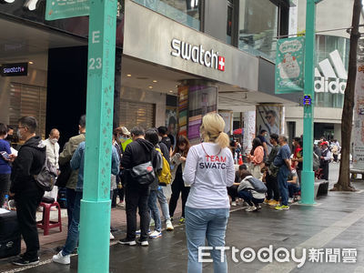 Swatch與OMEGA(歐米茄)聯手打造的Speedmaster Moonwatch超霸登月錶系列於今(26日)開賣,販售門市西門形象..
