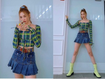 被封為「南韓第一腿精」的宣美,近日帶著新曲回歸,頻頻在個人IG發布青春洋溢的造型吸引目光,當中一套貼身的藍綠色格紋露肚裝,她特別搭配丹寧..