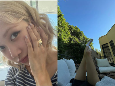 南韓女子天團BLACKPINK成員ROSÉ分享夏季生活照,她無論是披著西裝外套帥氣彈吉他,或著穿著休閒橫條紋衫撫臉自拍,都可見一只金戒..