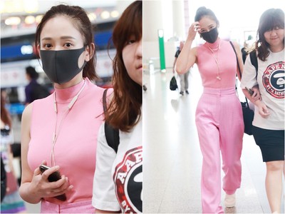 陳喬恩日前現身機場時,用粉色小高領背心搭配法國品牌Sandro粉色長褲,打扮成「粉紅芭比」的模樣,輕甜造型、素淨臉龐,讓她自帶一股少女氣..