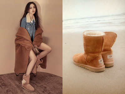 冬天包緊緊,女明星反其道而行,Angelababy穿上UGG雪靴與短裙,露出一雙美腿,線條勻稱、膚色白皙,讓女生看了好羨慕,她的雪靴有毛..