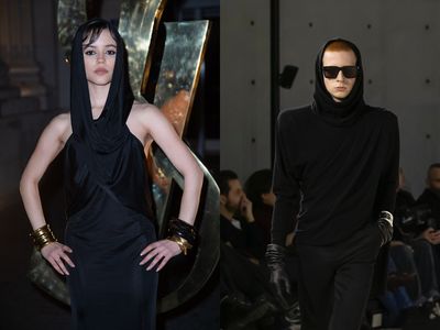 SAINT LAURENT 2023秋冬男裝大秀上,邀請到全球爆紅的「星期三」女星珍娜奧特嘉(Jenna Ortega)到場看秀,成為現..