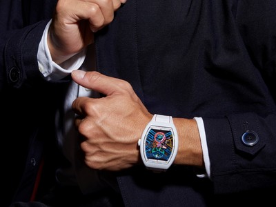 前衛設計著稱的Franck Muller,讓鏤空錶變繽紛了!過去總在時標與面盤大膽玩色彩,這回將點子動到鏤空錶橋上,推出Vanguard..