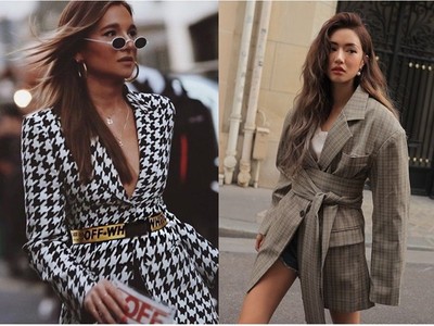 原本這季流行西裝外套是寬肩oversize,高個兒穿沒問題,但嬌小女孩很容易被壓垮,看起來沒有精神。但加上腰帶之後,因為把腰身束出來了,..