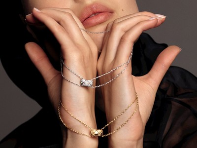 香奈兒(CHANEL)2015年推出Coco Crush系列珠寶,以「Matelassé」菱格紋圖騰為靈感,運用金雕創作菱格紋圖騰交織的..