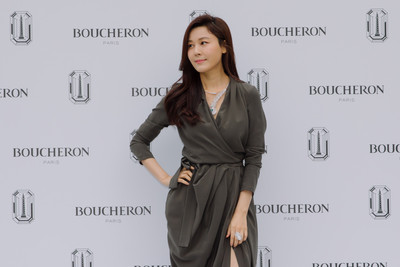 BOUCHERON(寶詩龍)在首爾舉辦Les Salons Boucheron新品品鑒沙龍活動,金荷娜試著將全新Jack系列長鍊繞短戴在..