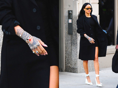 全身上下有數十處刺青的西洋流行天后蕾哈娜,用她手掌與手腕上的改造部落圖騰刺青,巧妙搭配Chopard蕭邦Happy Hearts手環,透..